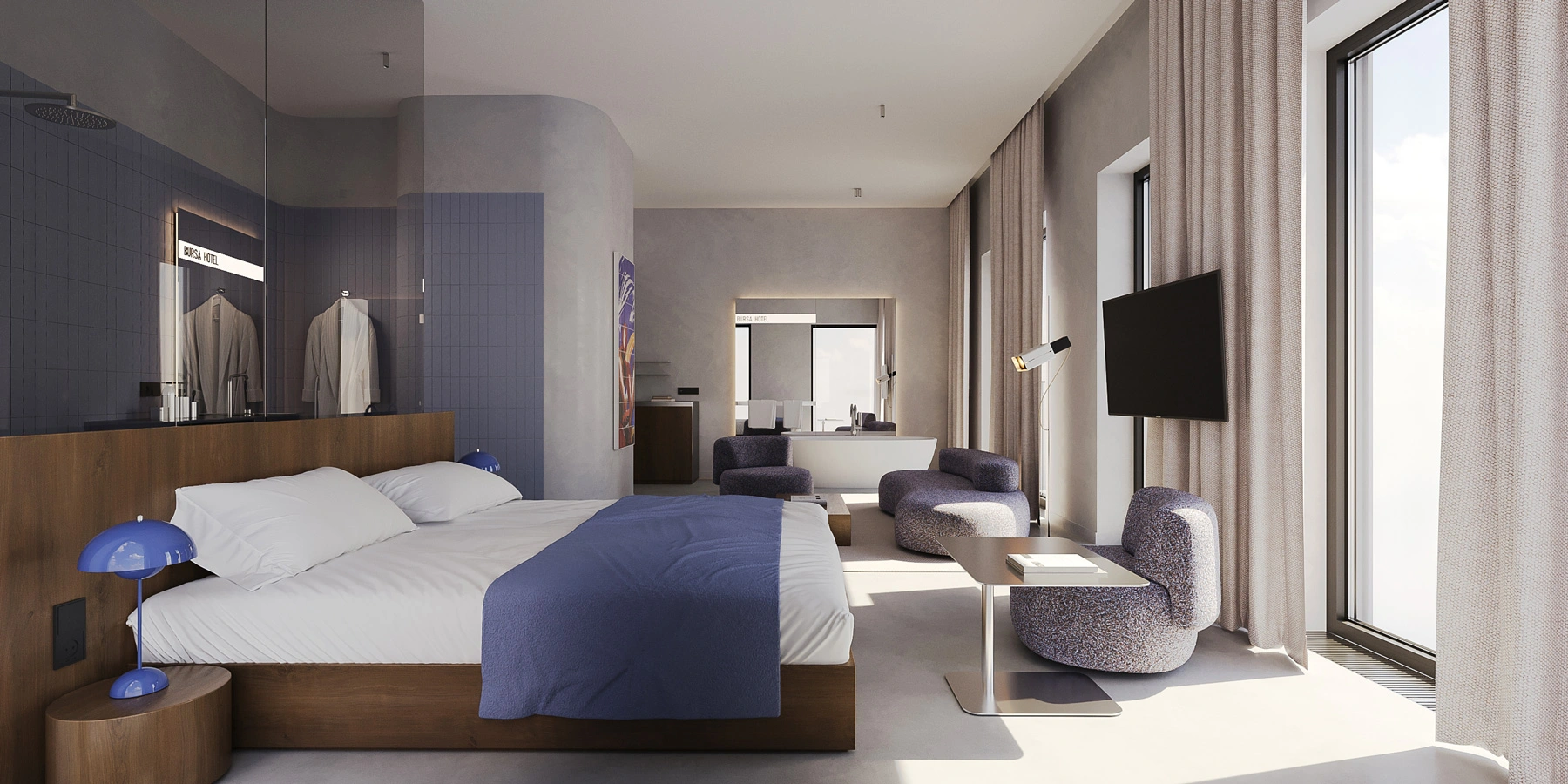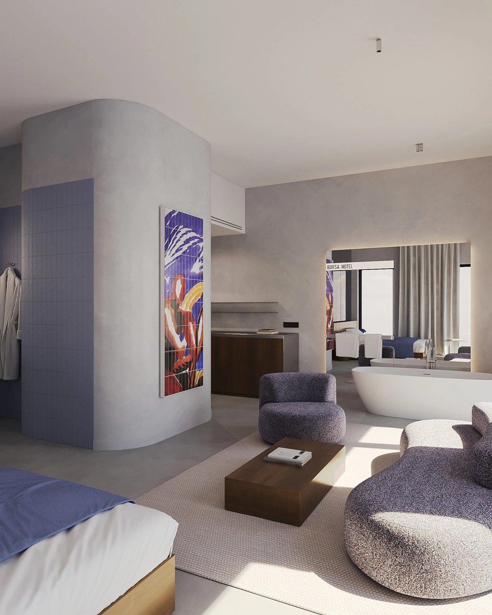 BURSA Lviv Rooms elevates the concept of luxury through four unique categories, each offering expansive spaces that awash with natural sunlight. Crafted with impeccable taste, these rooms are appointed with high-end materials and sophisticated finishes.