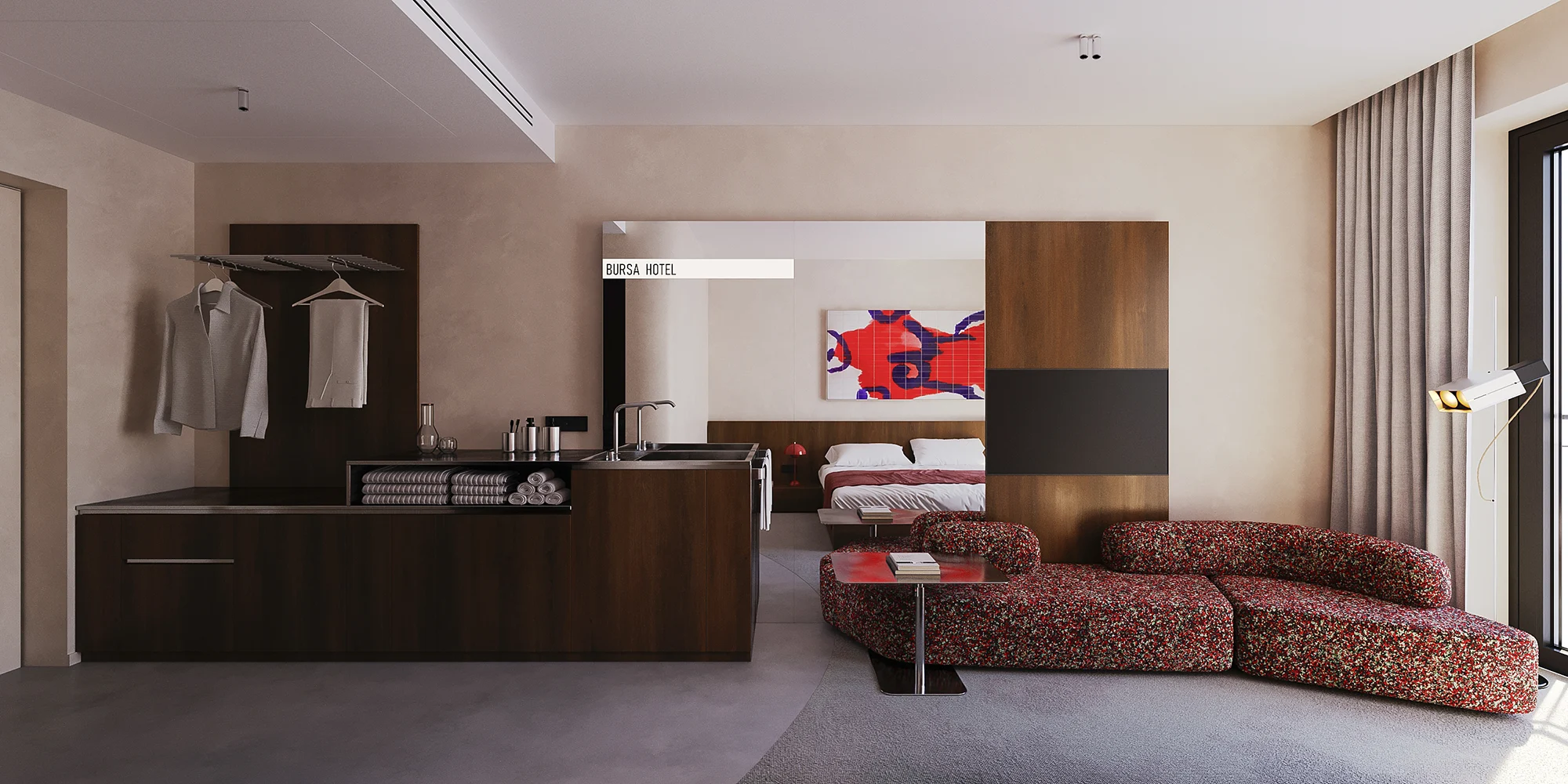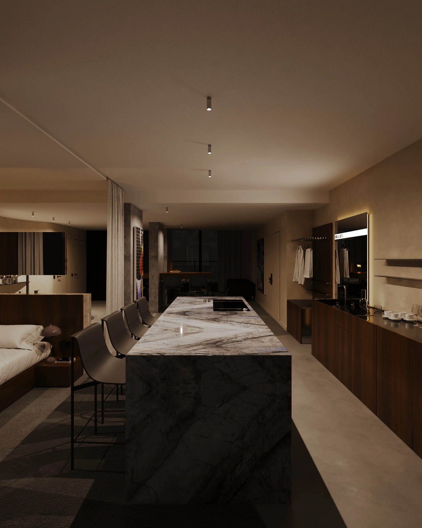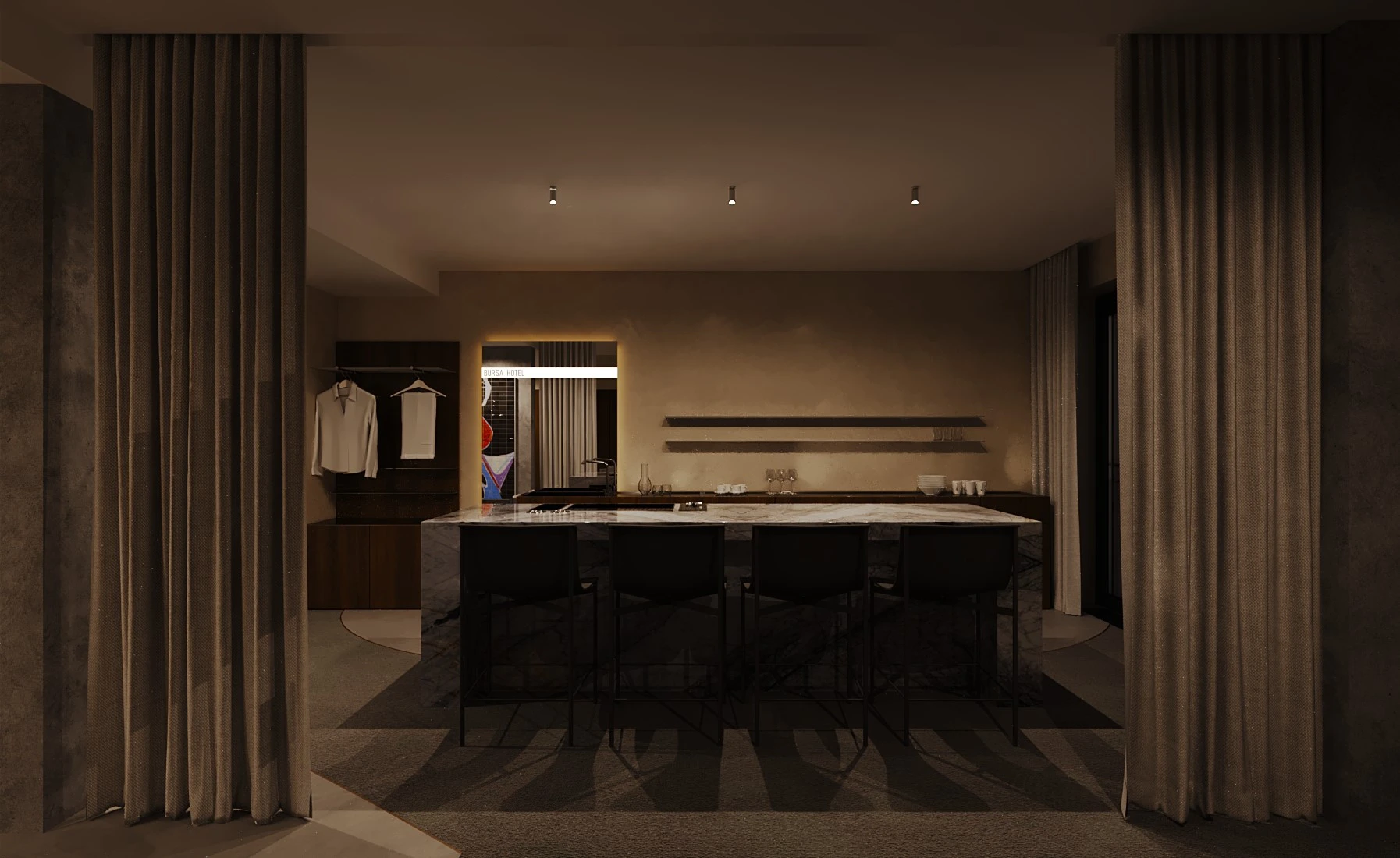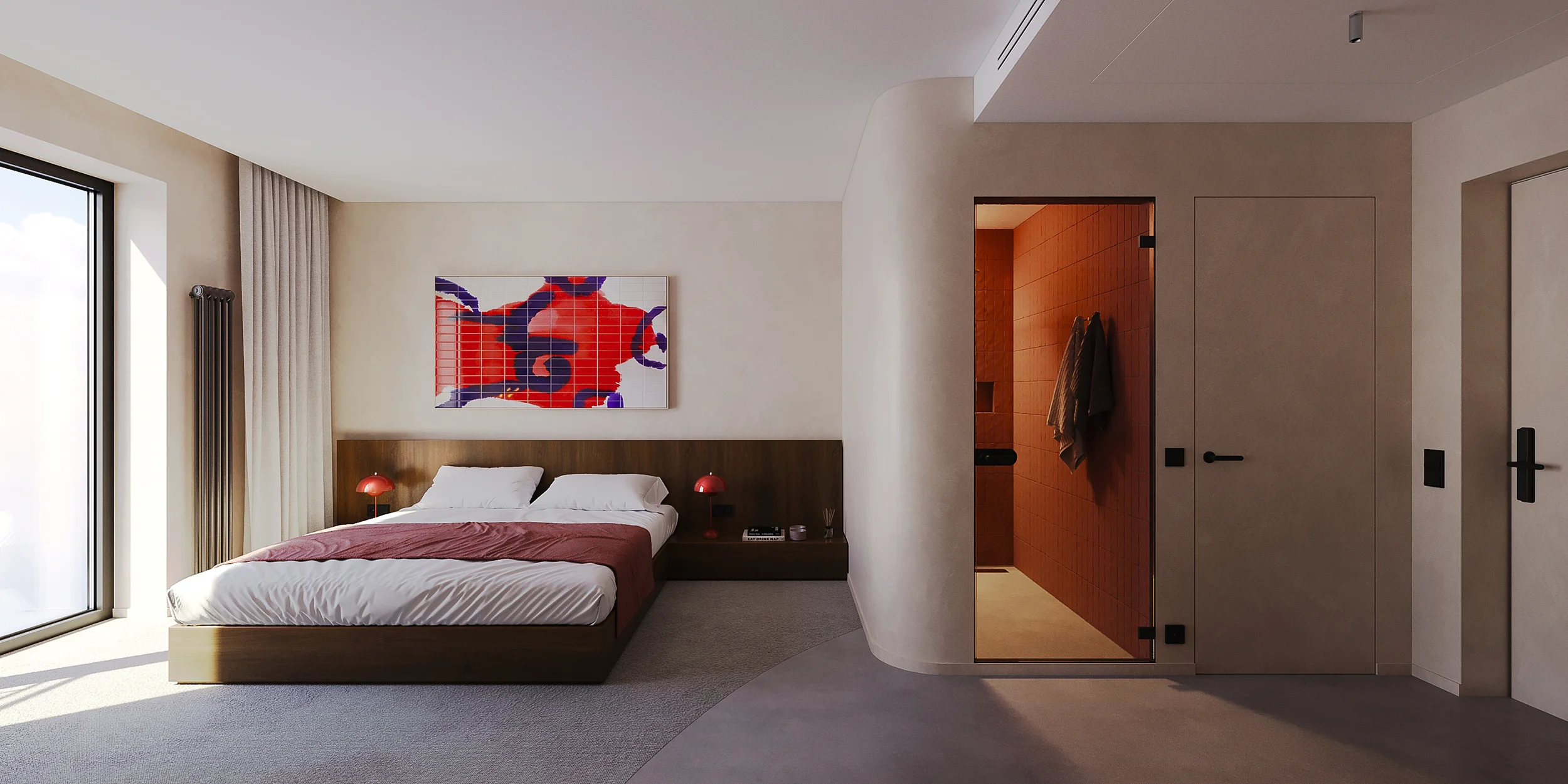 The light design, meticulously crafted by EXPOLIGHT, adds an air of elegance, ensuring a harmonious blend of comfort and aesthetics in every corner. Adding to this refined atmosphere, every room features exclusive artworks by celebrated Ukrainian artists, turning each space into a private gallery that salutes local talent and creativity.