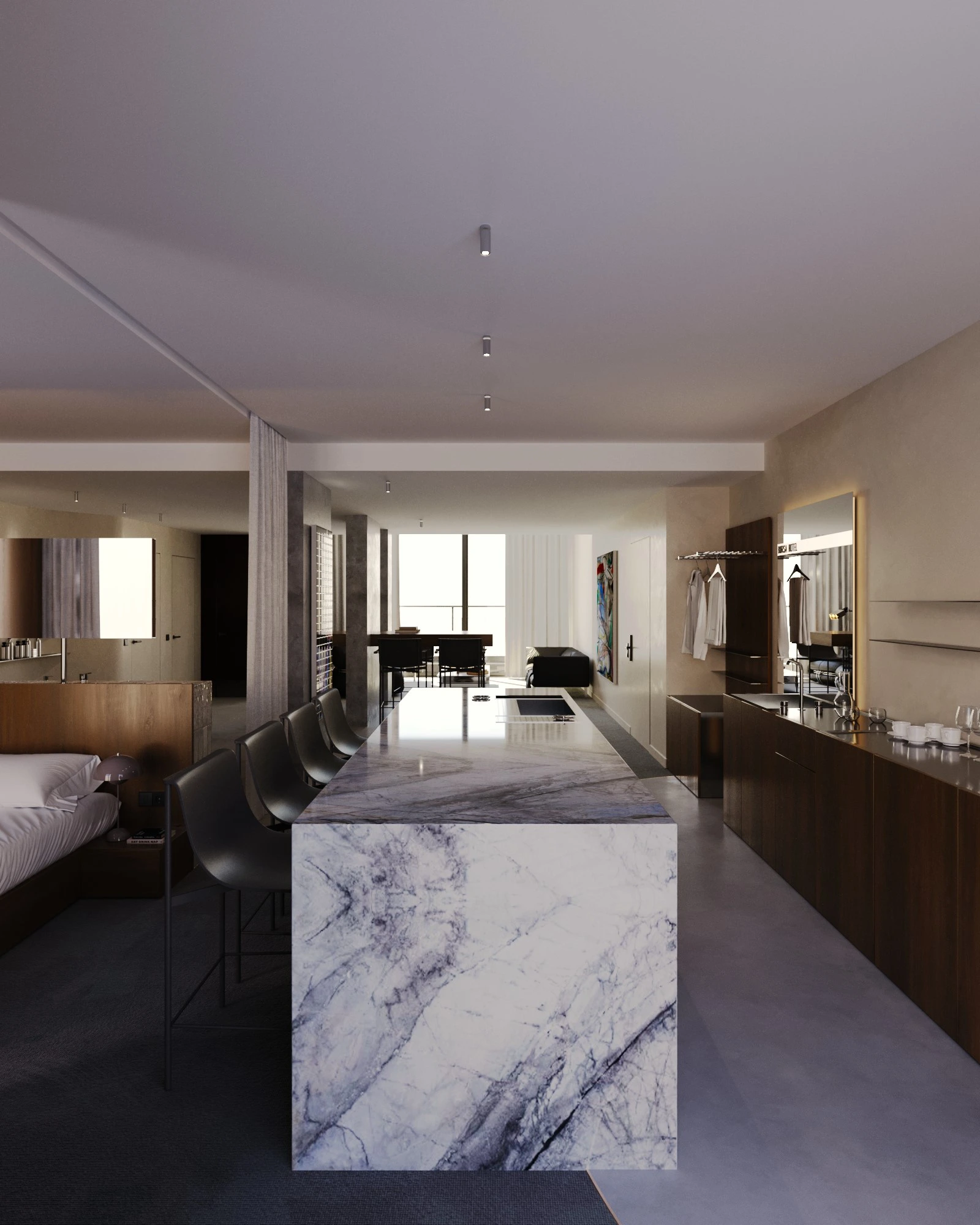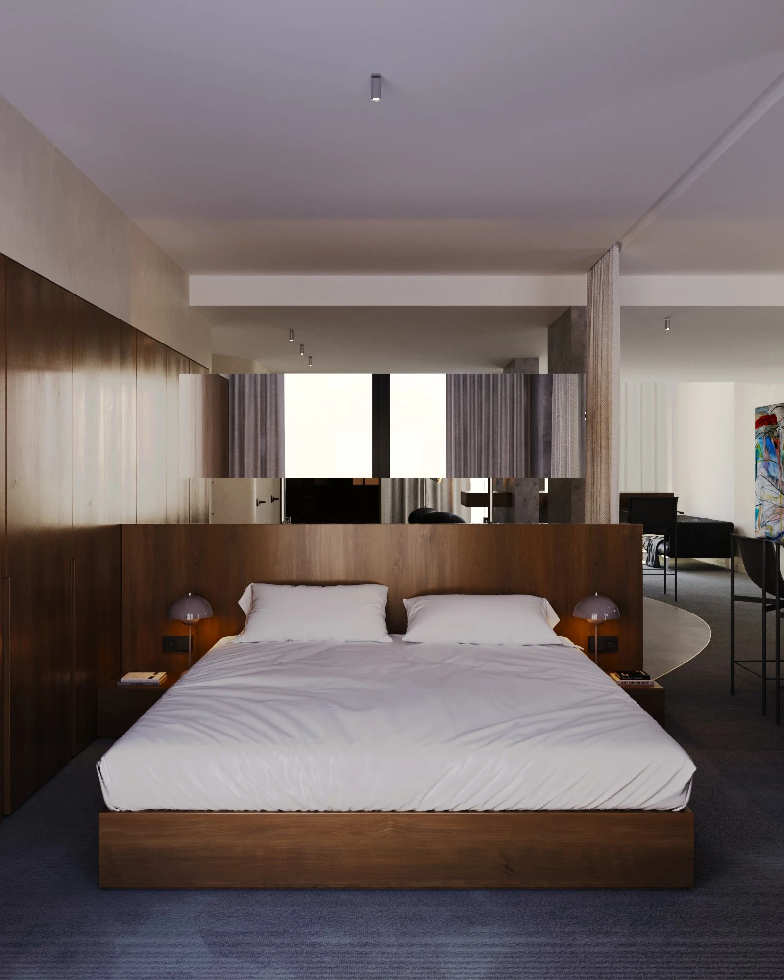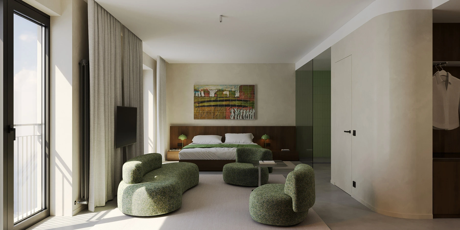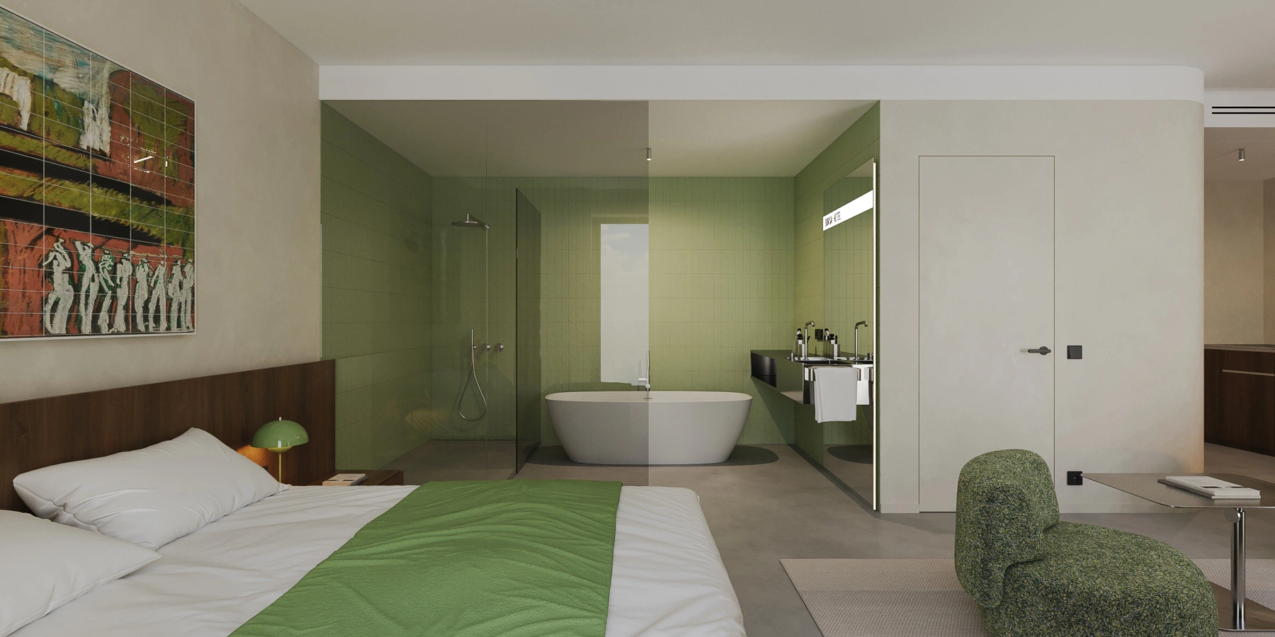 The light design, meticulously crafted by EXPOLIGHT, adds an air of elegance, ensuring a harmonious blend of comfort and aesthetics in every corner. Adding to this refined atmosphere, every room features exclusive artworks by celebrated Ukrainian artists, turning each space into a private gallery that salutes local talent and creativity.