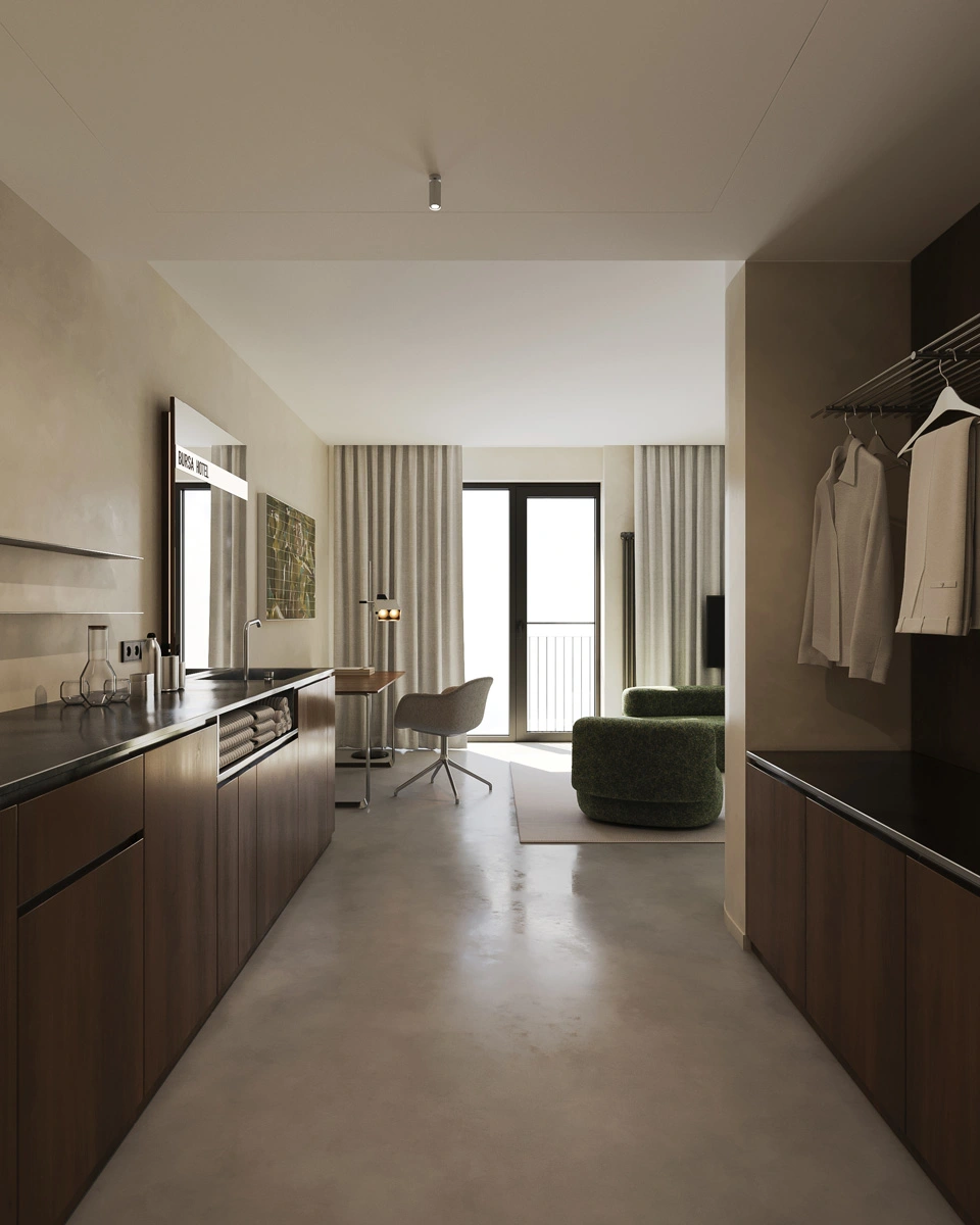 The ambiance of the hotel blends sleek, modern comfort with hints of heritage, creating an inviting environment for relaxation and inspiration. Enhancing this experience even further - our restaurant, brought to you by the culinary minds behind SPELTA, where guests are treated with dishes that perfectly echo the hotel’s distinctive flair.