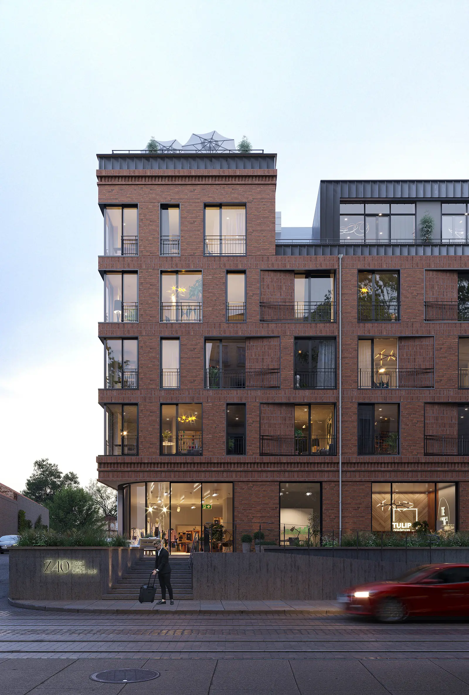 Z40 introduces a fresh concept of multifunctional real estate, preserving privacy, personal space, and reverence for Lviv's historic charm. It encapsulates the city's essence in miniature, offering a refined yet familial atmosphere. With an elegant aparthotel boasting 71 rooms, 2 residential sections with 69 private units, and a compact 7-level Office-Hub spanning 1140 m2, Z40 prioritizes a protected, intimate environment shielded from external noise. Its facade, inspired by the historic architecture of Old Zamartyniv, harmoniously integrates modernity with tradition. High-quality facade materials ensure enduring sophistication, making Z40 a timeless attraction in the district for years to come.